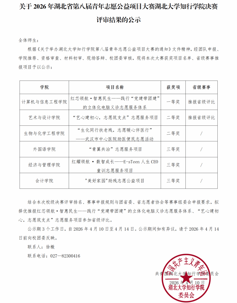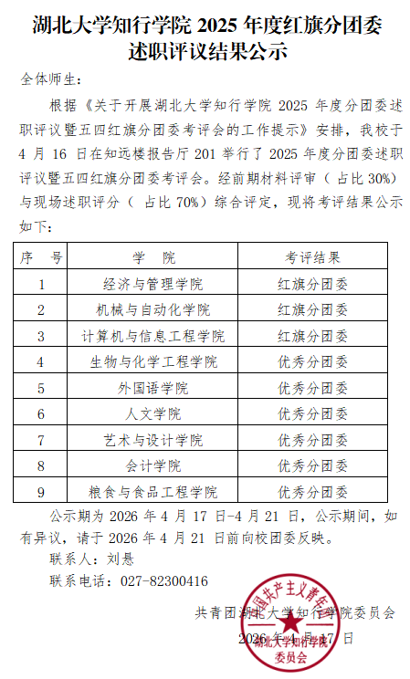 - 湖北大学知行学院2025年度红旗分团委述职评议结果公示