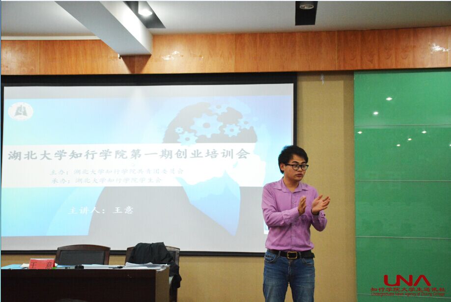 本网讯(通讯员 杨青)11月6日上午10时,由我院团委和武汉市青年创新营共同主办、院学生会创业就业部承办的第一期创业培训会在报告厅202举行。此次创业培训会围绕“弘扬创新精神,鼓励大学生创业”的主题,给创业的大学生提供一个与创业导师交流的平台。武汉市青年创新科技服务中心副主任王意老师、院团委书记陈欣老师都出席此次培训会。