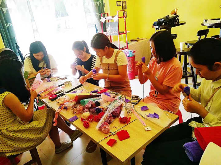 为了准备此次活动,院学生会成员利用业余时间做手工花,先剪纸,卷花,再粘花,最后进行花朵的包装。义卖这两天,买花的人不仅可以线下购买,也可以线上预定配送。