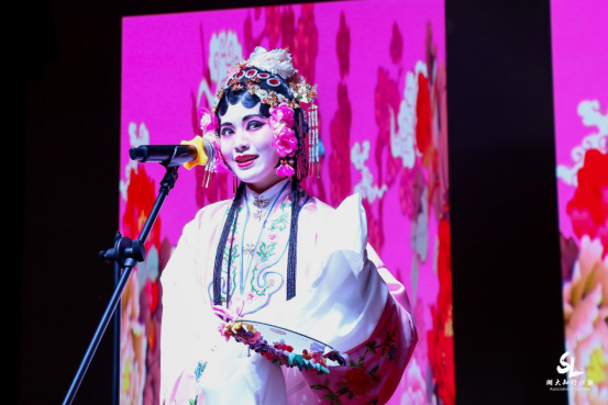 一曲《长安忆》将书法创作、演唱、古典舞蕴藏其中,一句“忆昨踏雪度长安”将现场拉入唯美的意境之中。坚持文化自信,弘扬民族文化,展现中华戏曲魅力,传播戏曲文化,由扶雅轩戏曲社带来一曲《一枝梨花压海棠》,以惊艳全场的嗓音与腔调,赢得了场下观众的阵阵掌声。Mars动漫社成员带来的《神的随波逐流》凭着对动漫的无限热爱,将二次元文化以生动活泼的方式展现给现场观众。精美的服饰,动感的旋律,曼妙的舞姿将现场气氛推向高潮。