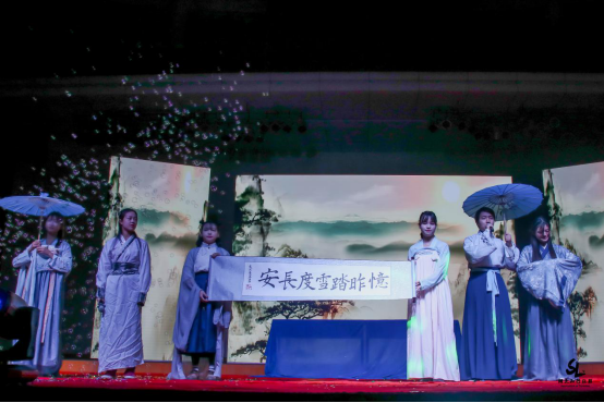 从争执,烦恼到和好如初,携手并进。视阔文学社、人文讲堂通过演绎两个社团从矛盾到互相帮助的故事,阐述当代大学社团之间所应有的互助、和谐、进步的关系。由江汉大学文理学院音乐分子协会一曲民谣《少年锦时》,追忆往昔,直戳人心;韩语社热情有力的舞蹈吹散天气的严寒,将现场气氛再次推向高潮。“兴我礼仪之邦,展我汉服之仪。”由子歌汉服社作为压轴演出的剧目向大家普及汉服知识,传递传统文化,弘扬中国传统文化精神,从听觉与视觉上的结合给观众带来不一样的感受,展现中国传统服饰的独特魅力。