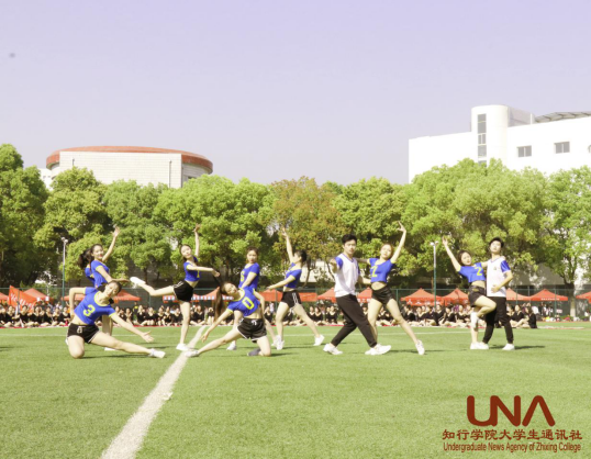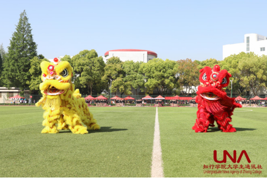 开幕式表演环节中,彭德忠书记、卜诗桢院长共同为舞狮“点睛”, 打滚、单侧、挂腰、直躺,时而匍匐,时而盘旋,两头狮子一会顽皮嬉戏,一会威严耸立,变化多端,让人目不暇接,知行学子在动感欢快的音乐中将雄狮的各种表情和动作演绎得活灵活现,台上队员精神抖擞,台下观众呐喊助威,场面十分热闹。在艺术操团体表演中,100余名知行学子身着统一服装,手持彩带和呼啦圈跟随节奏舞动,组成运动场上一道靓丽的风景线,动感的旋律、整齐的动作、多变的队形、青春的风貌,引来师生阵阵掌声。艺术团健美操队的啦啦操表演和着轻快的旋律,活力四射,动感十足。