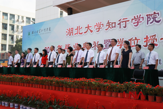 湖北大学副校长蒋涛、湖北大学学工处副处长付治平、湖北大学教务处副处长吴明群、湖北大学学校办公室副主任甘珣、学院党委书记彭德忠、学院院长卜诗桢等全体院领导莅临本次活动,各职能部门、各系负责人、优秀毕业生、教师代表及毕业生家长代表出席本次活动。学院党委书记彭德忠主持典礼。