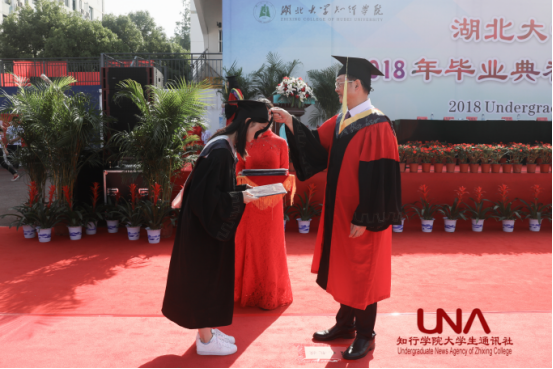 一千多名学生,一曲《曾经的你》,千人合唱中,无数名学子泪洒田径场。学士学位授予仪式上,党委书记彭德忠,院长卜诗桢为优秀毕业生扶正流苏并授予学位。优秀毕业生与两位主礼教授握手,仔细聆听教诲并进行合影留念。分会场中各系主礼教授同毕业生亲切交谈,相拥道别。学位授予仪式结束,毕业生与师长、同学、好友,在美丽的校园各处合影,纪念知行的一景一物,一张张照片定格了他们与知行相伴的青春,本次毕业典礼暨学位授予仪式圆满结束。