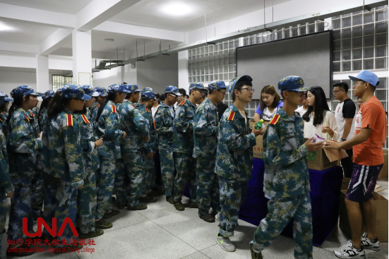 军训遇中秋,院方考虑到新生在校训练,不能回家与家人团圆,为了让新生在校也能感受到家的温暖,学院学工处特此策划本次中秋“送温暖”活动,由校方出资为新生准备了5600个月饼、2800瓶饮料。校方表示,“每个人拿到的东西不多,但这是学校的一点心意,也希望孩子们能在这种特殊的氛围里,更好的团结相处。”