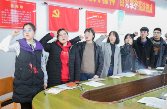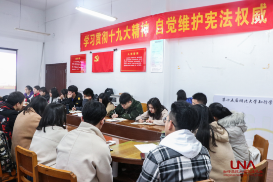 为推进“青年大学习”教育常态化制度化,着力提升学习的实效性,引导广大青年不忘初心、牢记使命,以习近平新时代中国特色社会主义思想武装头脑、指导实践、推动工作,切实增强“四个意识”,牢固树立“四个自信”。12月3日13时10分,院团委组织院级学生组织干部在知远楼110办公室举行了“青年大学习”第四课——“学习贯彻十九大精神 自觉维护宪法权威”学习座谈会。