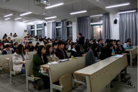 正式开讲之前,阮晓兵提出问题——“大学,你想成为学霸吗?”将现场的气氛调动了起来,几位同学纷纷发表自己的看法。本次讲座分为学习篇,生活篇,思想篇三个篇章,在每个篇章中,讲师都详细的介绍了一些如何让自己的大学生活更加充实的方法在讲课中阮晓兵还分享了自己的生活经验,如暑假做兼职教师,参加演讲与辩论比赛、志愿者活动等经历,并给同学们提供了一些大学生涯规划的意见。讲座最后,他以一个思考问题“工作岗位与所学专业不对口是不是教育资源的浪费?”结尾,现场一位同学回答:“大学学的是思维而不仅仅是死知识。”赢得了现场热烈的掌声。