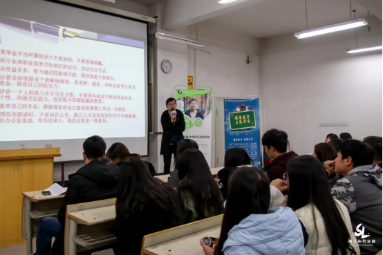 12月12日18时20分,本学期朋辈教育“才思”课堂第二课于知新楼208教室正式开讲,会计1503B班的阮晓兵同学给大家做题为“大学,你正在迷茫吗?”的主题演讲。