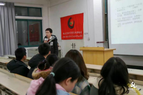 12月19日20时20分,本学期朋辈教育“才思”课堂第九课在知新楼208教室开讲,我院演讲与辩论协会会长石亮亮担任讲师与同学们分享在大学学习、生活的经历。