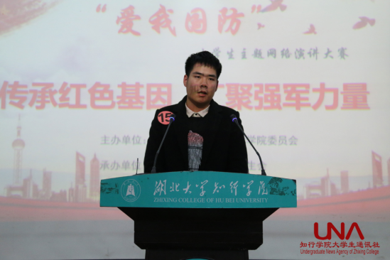 比赛开始,来自会计系的选手樊响为大家带来“强军梦,我的梦”主题演讲。他讲述自己为期并两年的军旅生涯,并表示在部队里瞄靶、拉练是他生活的全部。樊响说:“军营生活很苦很累,但我很充实。每当想起战友坚定的目光,想到祖国曾因国防不足而遭受的屈辱,我就会告诉自己坚持下去,要为祖国发光发热。”“他的感情很真挚,两年的军旅生涯给他的人生画上了浓墨重彩的一笔,他的演讲让我很感动。”陈兵点评道。