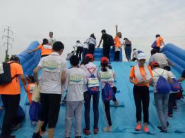 星孩们和志愿者们一起前往汉口江滩开展公益徒步活动来支持乡村教育。上次的活动是小星星们的动手动脑考验,这次的活动需要星孩们多多“动腿”接触大自然,在走路的同时也对慈善有所帮助,意义非凡。在徒步的过程中,时常有一些不顺利的情况发生,有的星孩对声音比较敏感,听到某些声音的时候会害怕,志愿者们通过安抚和转移他们的注意力解决问题,有的星孩在开展爬充气滑梯活动时不敢去尝试,还有的星孩不配合活动等等,所有的问题因为有志愿者们耐心地引导最终解决。