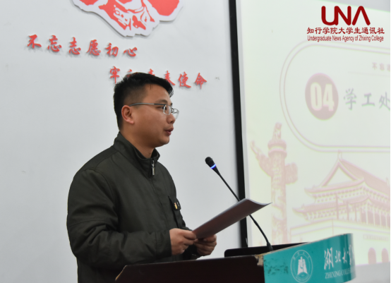 最后,学工部部长王刚做总结发言,他强调,虽然雷锋已逝,但雷锋精神从未离去,不管时代如何变迁,雷锋精神所蕴含的向上,向善的力量都犹如一盏明灯,顺应并推动时代的发展。他运用雷锋小故事,将雷锋精神赋予了新的时代意义,向全院青年学生提出要求,学习雷锋强烈的主人翁精神、奉献意识、诚实守信,并指出,弘扬雷锋精神,不仅仅是弘扬中华民族优秀传统的标志,也成为中华民族持续发展的需要,时代发展的必然要求。他希望全院学生以自身的实际行动积极响应团的号召,在全院范围内广泛、深入、长期地开展“向雷锋同志学习”的活动,积极参与学院组织的各项志愿活动,在实践中加深对雷锋精神的认识,以“厚德载物、认知践行”的精神向雷锋同志学习致敬。