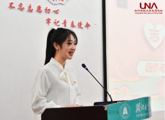 2018年,我院“志愿百团进社区”项目荣获湖北省教育厅高校校园文化优秀成果三等奖,“河湖保护”志愿服务成立的青春“护水驿站”,被楚天都市报等多家媒体进行了报道,品牌志愿服务项目取得的成绩,离不开各系部、各志愿团队的努力付出。“志愿百团进社区”与“河湖保护”志愿服务示范团队代表分别进行了汇报宣讲。夏雅雯同学讲述经济与管理系用红色思想带动引领社区建设,杨显同学讲述人文与社会科学系将志愿服务与专业知识结合,提升了志愿服务的专业化水平,展现了志愿者们的良好风貌与当代大学生风范。