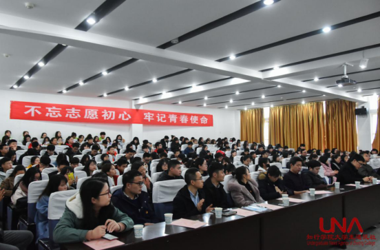 2019年3月5日,是第56个全国雷锋纪念日,同时也是第20个“中国青年志愿者服务日”。为积极培育和践行社会主义核心价值观,为武汉第七届世界军运会的成功举办和新中国成立70周年营造向上向善、诚信互助的社会氛围,院团委决定3月份在全院开展青年志愿者“学雷锋志愿服务集中行动月”活动。3月5日9时,我院2019年“3.5”雷锋月启动仪式在学术报告中心弘文厅举行,此次雷锋月活动主题为“不忘志愿初心,牢记青春使命”,学工部部长王刚、院团委及各系部负责人、各系辅导员老师以及院系青年志愿者学生代表共计200余人,参加本次活动。