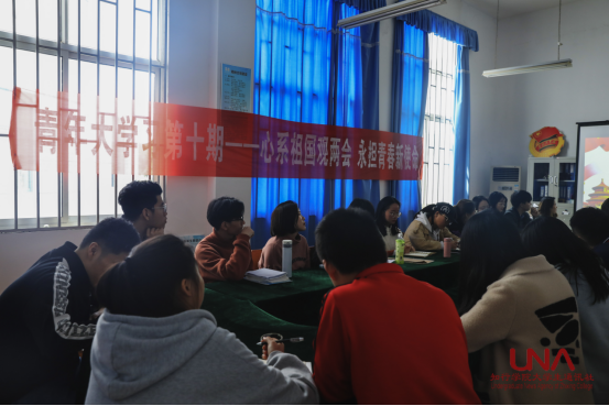 为深入学习贯彻全国两会精神,加深青年学生干部对两会的认识,引导学生关注时事热点,互相交流两会的认识,3月11日12时20分,院团委组织院级学生组织干部在知远楼110办公室组织开展第十期“青年大学习”。