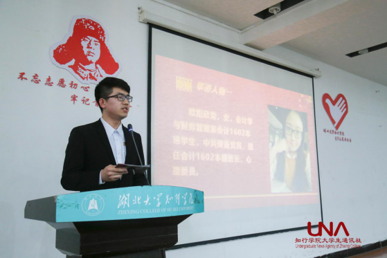 霸气洒脱又温暖善良的唐晓梅同学是人文学院汉文秘班的班助姐姐,唐晓梅同学作为他们学习生活上的教导员,为酷日下训练的他们送去矿泉水,放弃自己的节假日,陪着他们欢度中秋。作为校青协的领头人之一,青协在她们的带领下成就显著,得到了我校乃至社会的认可和肯定,在提升影响力上发挥了不可或缺的作用,用实际行动传承着雷锋精神,感染并鼓励着广大的知行学子。
