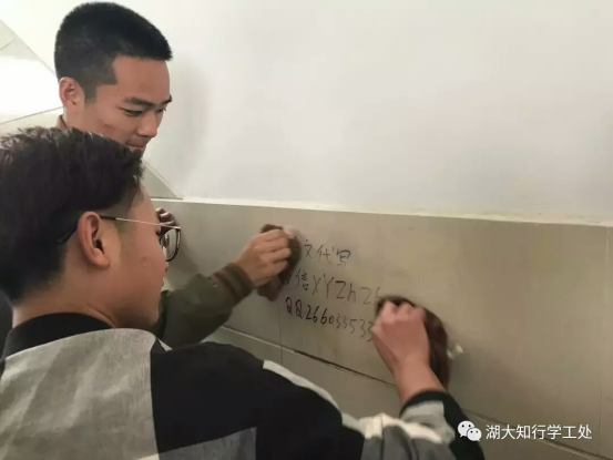 经济与管理学院学生党支部与院学生会于3月11日、3月13日、3月21日在知新楼开展了三次以“三月雷锋月,我们在行动”为主题的铲除小广告活动。参与劳动的同学们用抹布、铲子等工具对各个教室、楼道的小广告进行了彻底的清理。