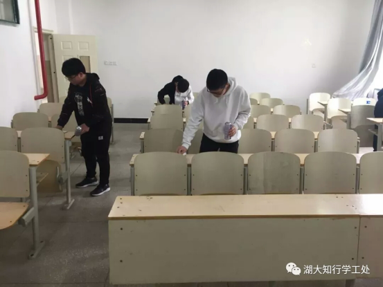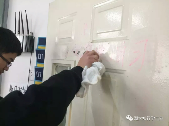 会计学院党小组成员和院学生会成员于3月12日对知新楼四楼、五楼的卫生进行了集中清理。将美化校园环境工作落实到实处,教室里的黑板、墙上的小广告都被清除干净。同学们在互帮互助中感受集体的力量,用自己的实际行动为学校增添一份清新,一抹明亮。