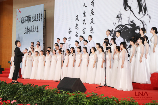 我校第十三届“五月的鲜花”合唱音乐会在校艺术团红衫林合唱队带来的歌曲《我和我的祖国》中正式拉开帷幕。11个合唱节目紧紧围绕今年五四的主题“高举团旗跟党走 青春建功新时代”,献礼五四100周年,昂扬的基调,默契的和声,青春洋溢、热血激扬,展现了当代知行人热情、团结、向上的精神面貌。