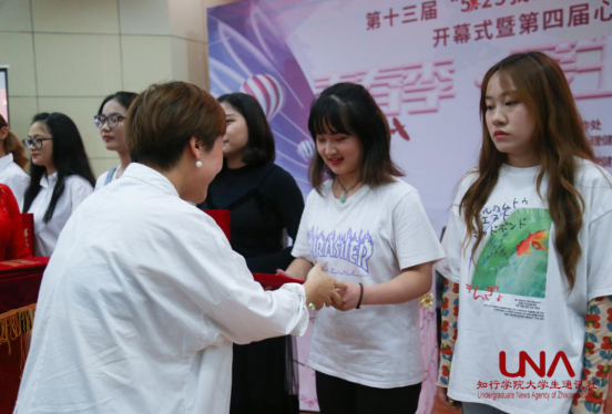 心理健康协会代表宣读第十三届“5.25”心理健康活动月倡议书,“少年强,则国强,少年弱,则国弱,少年胜于欧洲,则国胜于欧洲,少年雄于地球,则国雄于地球。”梁启超先生这一名言震荡着一代代年轻大学生的心灵,我们大学生要以良好的心理素质迎接未来的挑战,为国家的富强奉献自己的青春。她就“我们作为一个新时代的大学生,应该如何关心自己的心理健康”这一话题向全体学生发起了倡议:我们要多给生命一些珍爱,多给心灵一些关注,多给交流一点空间,多给阅读一点时间。学工处处长王刚为心理健康协会优秀干部颁奖,在场师生以热烈掌声表示祝贺。