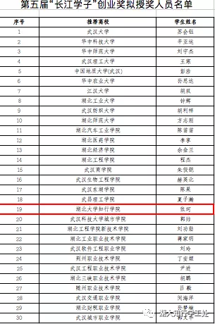 经过院级初评,校级复评,校团委推选2015级创业学子张珂参加省级评选,最终张珂荣获“长江学子”创业奖,全省仅30人获得该项殊荣。