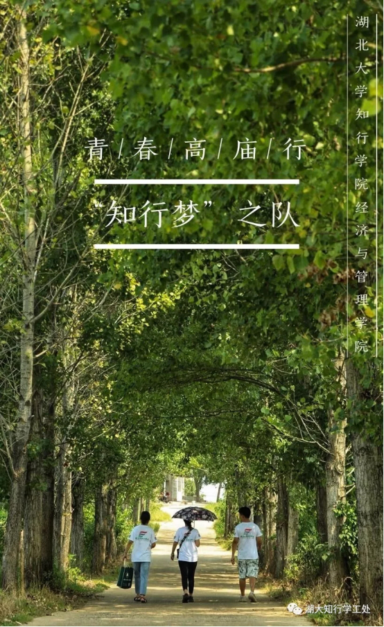 为积极响应“三下乡”活动的号召,深入学习贯彻习近平新时代中国特色社会主义思想和党的十九大精神,由湖北大学知行学院经济与管理学院党委副书记管艳及指导老师甘露和彭鑫怡、王超、朱宇轩、范世明、宋子豪、璩诚等6名同学组成了“知行梦”之队,在经过老师和同学们的精心策划后,全队成员在湖北省安陆市南城街道高庙村进行了为期5天的“青春高庙行,下乡希望燃”三下乡志愿服务活动。充分利用大学生的知识资源服务社会,促使大学生志愿者了解当地风情和历史文化并且在实践中发挥自己的才能。