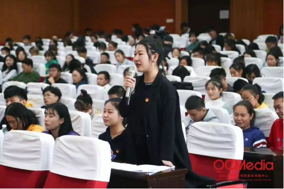上午九时,理论宣讲活动正式开始,校领导、学工处负责人、各学院党总支副书记、全校团学骨干代表、入党积极分子代表共计480余人参加本次宣讲活动,校团委书记陈欣担任本场宣讲的主持人。