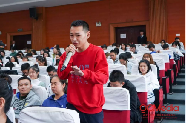 他以青年所喜闻乐见的网络用语进行开头,做了题为《青年要和“她”在一起》的宣讲。年轻的他以学长身份给予在场同学们建议。他说:“同学们到了大学,会社会认知体系重新塑造,对自我价值重新审视,这些是再正常不过的。”一语道出当下部分大学生对于学习生活的迷茫,并为在座学子对未来路上的奋斗方向给出指导。