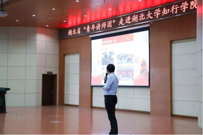 为深入学习宣传贯彻习近平新时代中国特色社会主义思想,团结带领广大青年增强“四个意识”,坚定“四个自信”,坚决做到“两个维护”,持续推进“不忘初心、牢记使命”主题教育深入实践,根据共青团中央在全团实施“青年讲师团”计划的部署精神,湖北省“青年讲师团”宣讲会于11月5日上午九时走进湖北大学知行学院,在学术报告厅201向广大青年学生进行现场宣讲。