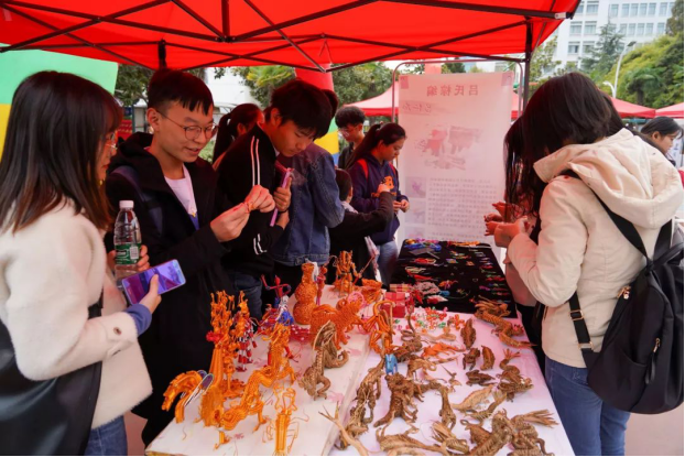 以习近平总书记为领导的党中央高度重视中华优秀传统文化的传承和弘扬,为让广大师生认识非遗文化是中国的优秀传统文化,是中华民族永恒的精神财富,同时感受非遗文化的魅力和深厚内涵,提高文化素养,增加爱护“非遗文化”、保护中华文化的责任感。11月20日10时至14时,校团委在我校坤生园门前篮球场举办了以“映初心承中华文化,担使命展非遗风采”为主题的第十五届武汉市高校艺术节非遗进校园非物质文化遗产传统技艺现场展示活动。