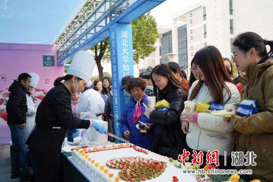 中新网湖北新闻11月30日电 (刘锐 魏斌)你见过可以吃的餐具吗?你吃过3D打印出来的“海绵宝宝”吗?师生自己调制的鸡尾酒啤酒你想喝吗?11月29日下午,湖北大学知行学院第三届“食出健康 智创未来”大学生美食文化节在该校知行广场举行,不少高科技食品技术的亮相引来师生围观品尝体验。活动期间,湖北省教育厅副厅长徐雁冰,湖北省粮食局副局长刘海涛,湖北大学党委书记尚钢、副校长蒋涛,知行学院党委书记彭德忠、校长卜诗桢等嘉宾与该校万余名师生共同享受了这场美食盛宴。