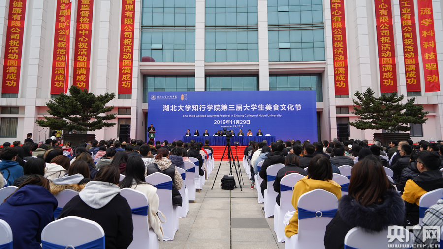 央广网武汉11月29日消息(记者熊峰 通讯员刘锐 魏斌)11月29日下午,湖北大学知行学院第三届“食出健康 智创未来”大学生美食文化节在该校知行广场举行,不少高科技食品技术的亮相引来师生围观品尝体验。湖北省教育厅副厅长徐雁冰、湖北省粮食局副局长刘海涛,湖北大学党委书记尚钢、副校长蒋涛,知行学院党委书记彭德忠、校长卜诗桢等领导和嘉宾出席开幕式,文化节当天还举行了啤酒大赛、茶文化展示等活动。