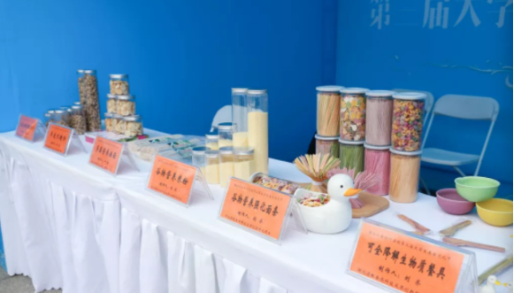 活动在该校艺术团的啦啦操和舞师表演中拉开帷幕。美食文化节展示的产品大部分都是师生日常教学科研成果,品种多达100多种。展品中,师生现场调制的鸡尾酒啤酒应有尽有,烘焙制作的面包蛋糕香喷可口,许多食品的口感和样式丝毫不亚于市场售卖。期间,师生们一边感受着丰富多彩的美食文化,一边品尝着现场调制烹饪的美酒美食,现场热闹非凡。在教学科研成果展示区,该校教师研发的可食性餐具、全谷物营养面条、嵌入式面条、全谷物营养米粉、芦荟酒等令人眼前一亮。“哇塞,这个餐具也太神奇了。用完了还能吃掉。”参加活动的学生陈丽咬了一口手上的“碗”后惊讶不已。粮食与食品工程学院专业老师刘齐博士介绍,这些餐具是大米加工过程中的副产品,制作过程中加入了一些耐高温和防水材料,能够使用半年之久,且成本远远低于市场上所使用的一次性餐具,既实惠又环保;在企业成果展示区,与学校进行合作的企业展示的3D打印技术、呼吸器佩戴VR课程、农药残留快速检测方法等令人格外好奇,学生们纷纷前往感受体验,“这是植物大战僵尸,不但像画一样立体,而且味道也不错。”合肥中农科泓智健康有限公司助理刁梅梅向围观的学生介绍,本次展出的四色3D食品打印机通过打印特制代餐粉,可以不间断打印出各式各样的平面食品,能满足不同人群需求,这些技术将逐步被引进到该校学生的教学课堂,更好提升学生的实践运用能力。此外,美食文化节过程中还举行了啤酒大赛、茶文化展示等活动,师生积极参与其中,其乐融融。许多网友观看网络直播后纷纷表示“又是别人家的学校”。