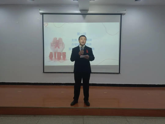 由主持人介绍此次莅临的嘉宾,江岸区疾控中心传染病艾滋病防治科主任白杨老师,为大家普及预防艾滋病的相关知识。防“艾”不防爱,用加法计算预防,用减法打破冷漠。用乘法计算关爱,用除法消灭歧视。