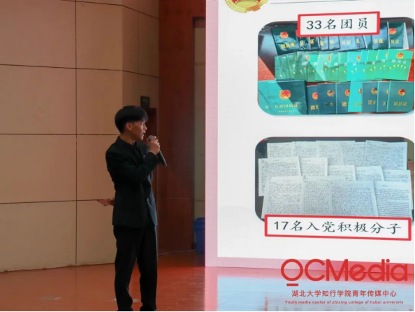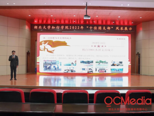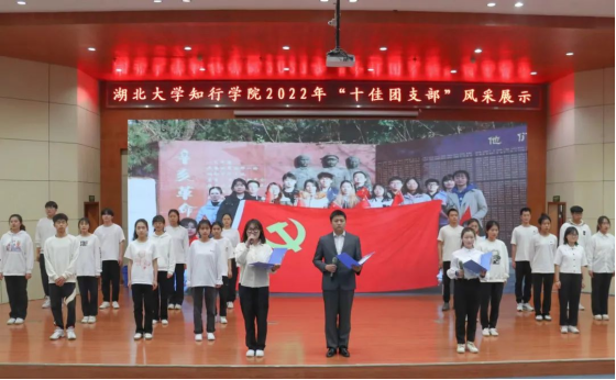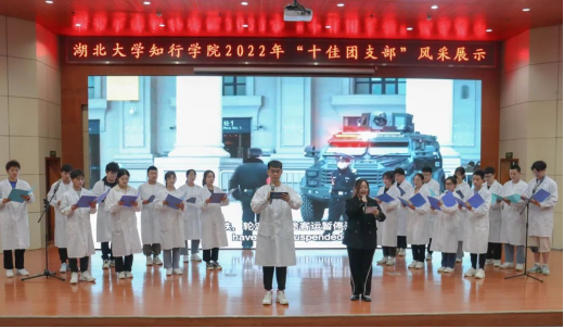 自2022年3月中旬以来,校团委对《团支部工作手册》进行初评,全校共推荐上报68本《团支部工作手册》参与2022年度活力团支部校级复评。校团委分别从思想引领、组织建设、团支部“三会两制一课”执行情况、“青年大学习”网上主题团课学习率进行综合评定,最终推选50个团支部进入“十佳团支部”风采展示。4月初,通过开展初赛、复赛,最终评选出湖北大学知行学院2022年度“十佳团支部”。为了进一步发挥学术典型的作用,4月18日,校团委在知远楼弘德厅举行湖北大学知行学院2022年“十佳团支部”风采展示报告会,集中展现团支部建设成果和典型经验,加强基层团支部示范引领作用。