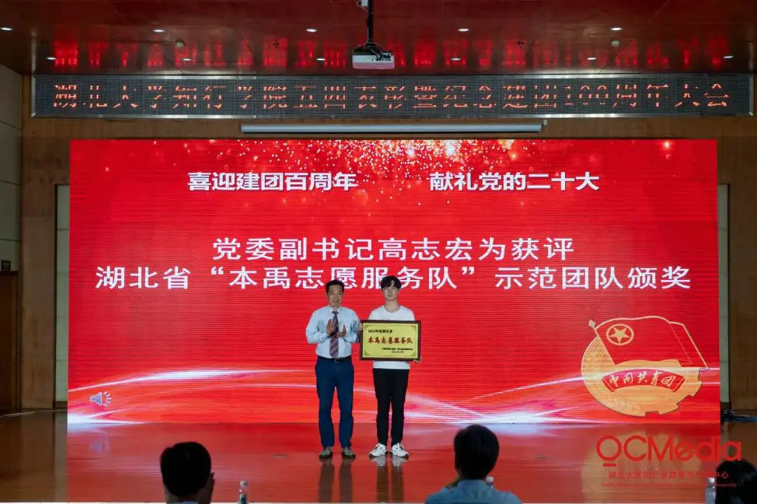 (党委副书记高志宏为获评湖北省“本禹志愿服务队”示范团队颁奖)