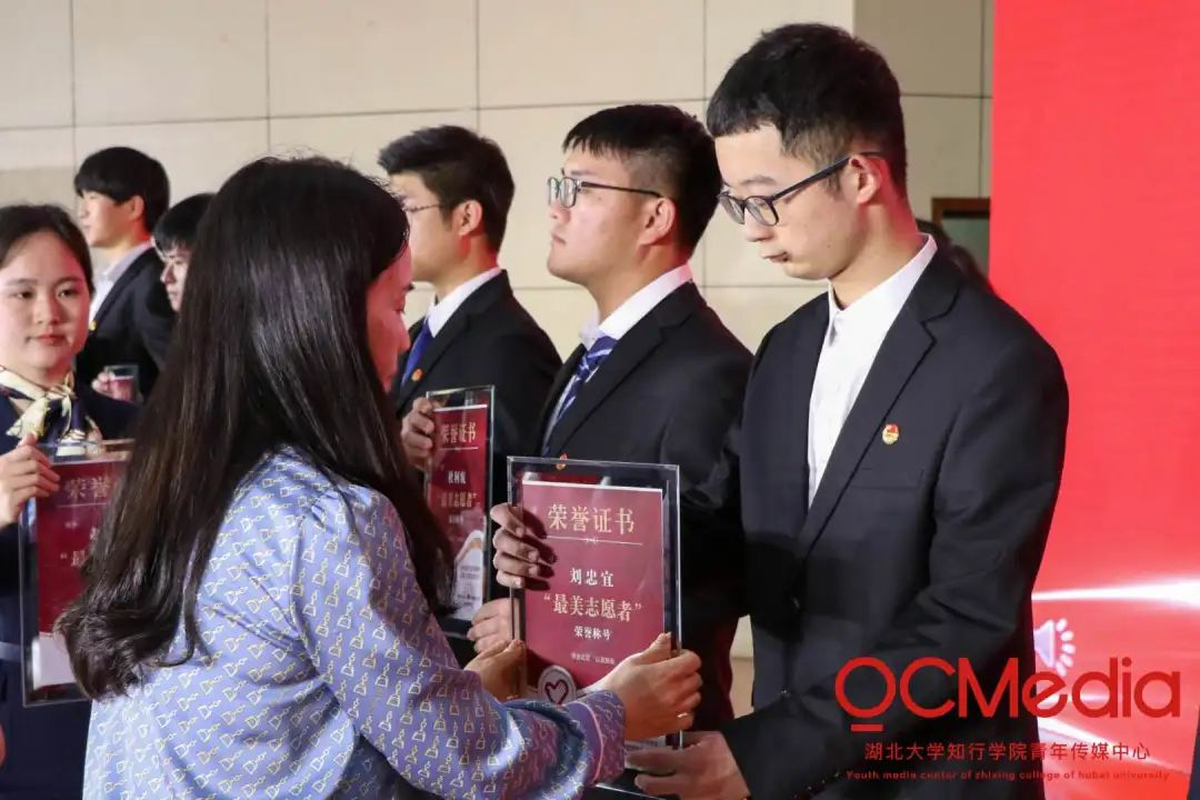 (副校长钟春敏为获评“最美志愿者”的获奖者颁奖)