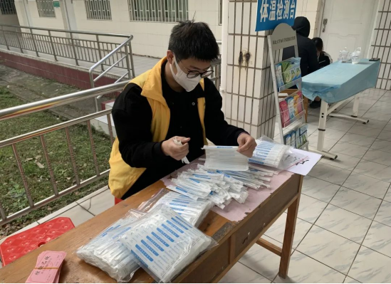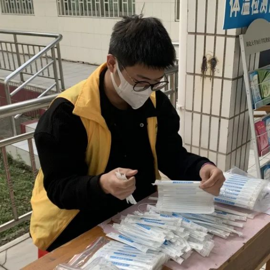 在疫情防控的关键时期,周凌锋同学挺身而出,主动担任学校志愿者,帮助开展核酸检测和接种疫苗工作。