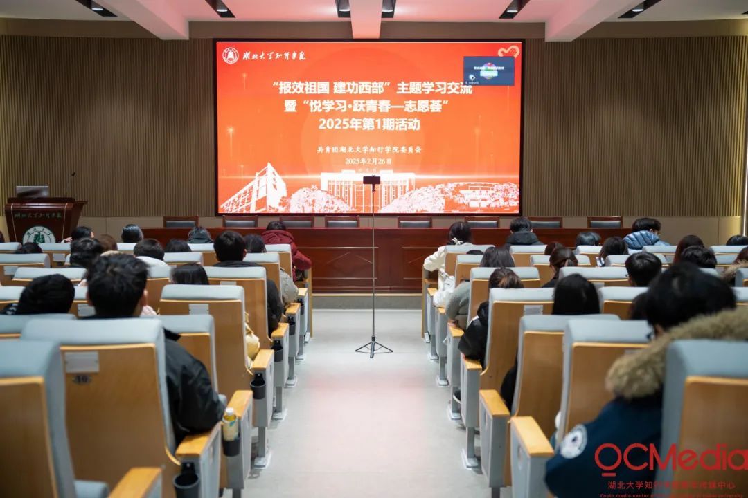 为深入学习《习近平总书记在新时代推动西部大开发座谈会上的重要讲话》《关于新时代推进西部大开发形成新格局的指导意见》等文件精神,湖北省西部计划项目办、省志愿者协会组织开展的“报效祖国 建功西部”主题学习交流暨“悦学习·跃青春—志愿荟”活动,此次会议邀请了数名扎根西部志愿者、在岗及即将派出志愿者进行交流发言。2月26日下午,校团委在学术报告厅106设置分会场,组织我校师生代表及西部计划志愿者意向者共150余人参加此次会议。