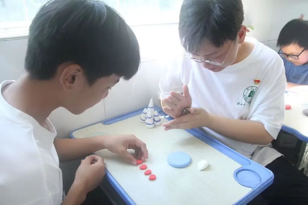 “中国航空”主题手工黏土课程。将知识科普与艺术实践相结合,引导孩子们使用黏土塑造火箭、卫星、飞机等航空器形象。团队成员旨在通过艺术创作的形式融入航天器科普内容。
