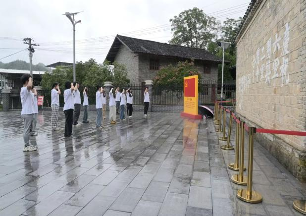 实践团在扎实推进美育支教、推普兴乡、非遗传承等核心工作的同时,进一步拓展服务维度,全方位、多领域开展多项社会实践服务。红色文化研学中,团队赴铜仁市图书馆追溯革命先辈足迹,探究红色文献与民族剪纸中蕴含的革命精神;在世昌广场、松桃石梁村探访红色遗址,梳理革命脉络,在革命标语墙下重温入党誓词,传承红色基因。