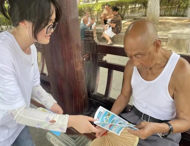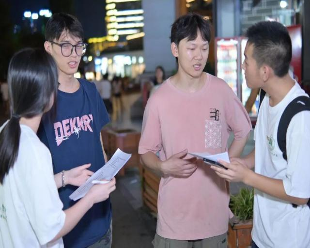 团队在中南门古城开展普通话使用情况调研,以走访和问卷形式,与当地居民、游客深入交流,掌握不同群体普通话使用场景与频率,为推普工作提供依据。