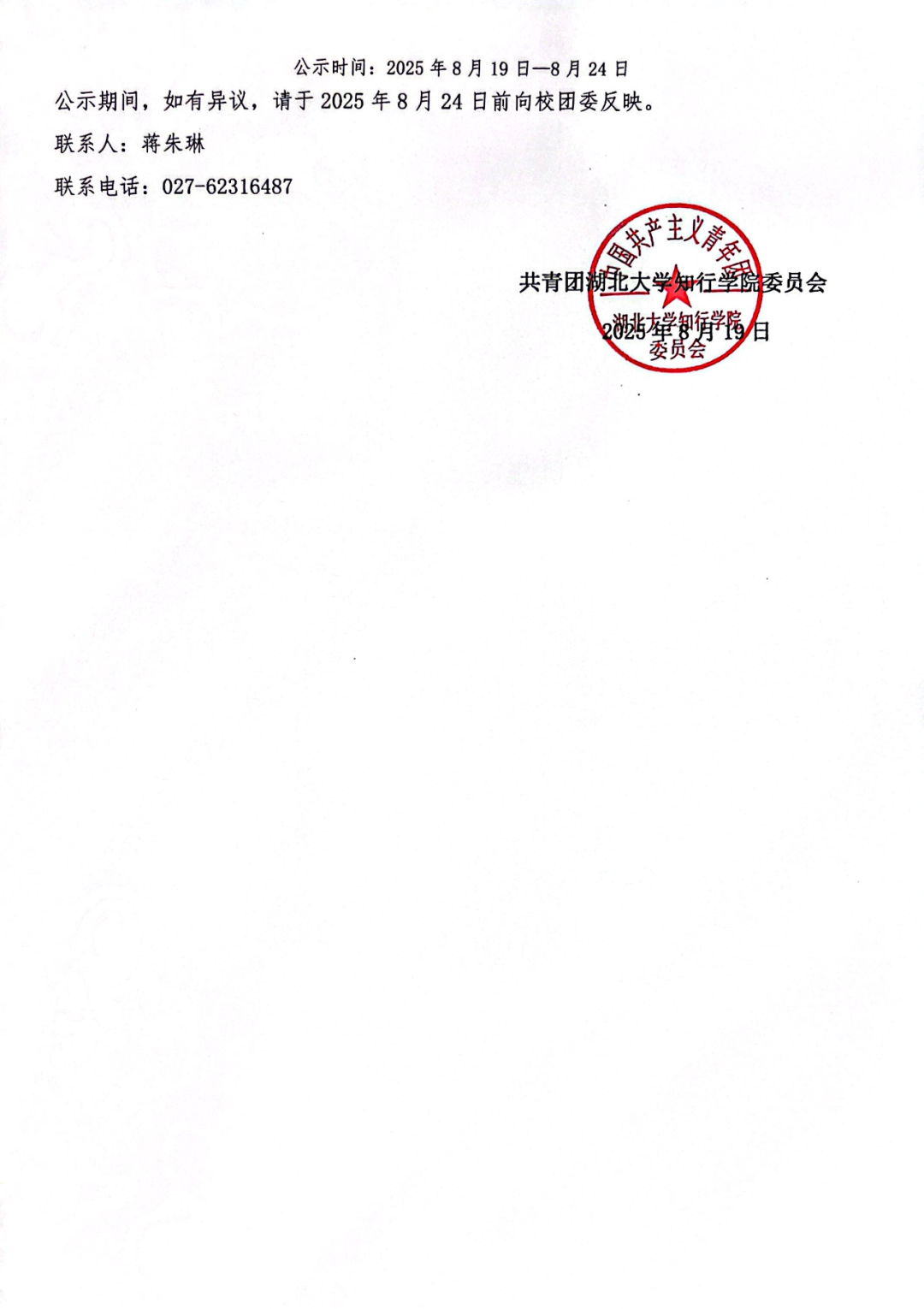 公示期间,如有异议,请于2025年8月24日前向校团委反映。