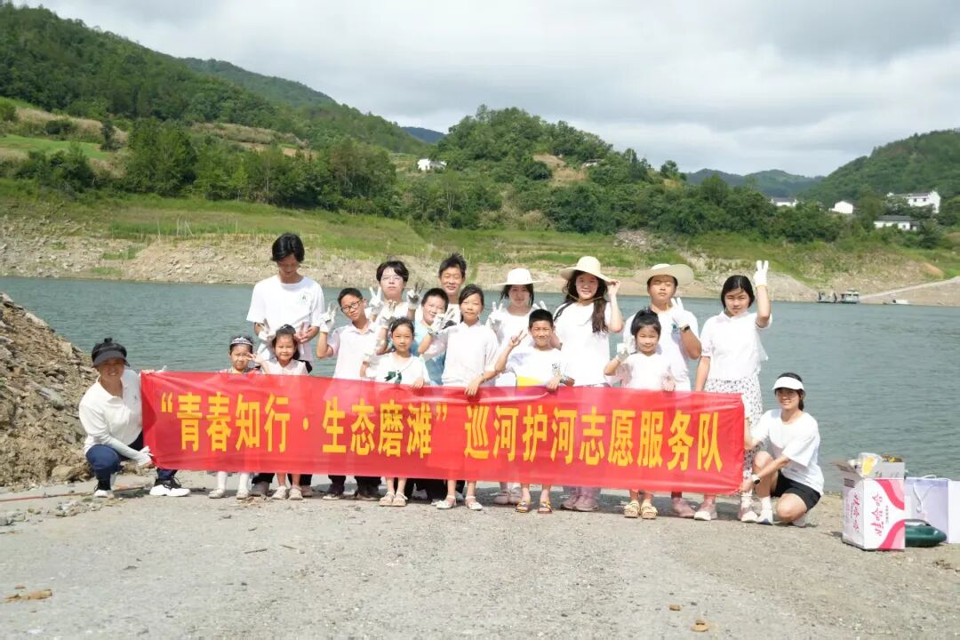 7月7日,实践团组织成员并带领部分爱心学堂学员开展了“守护母亲河——堵河”环保志愿活动。 队员们手持清洁工具,沿磨滩村附近河岸清理散落的塑料袋、废纸、瓶罐等垃圾,身体力行践行“绿水青山就是金山银山”理念,为守护磨滩村的生态之美贡献了青春力量。