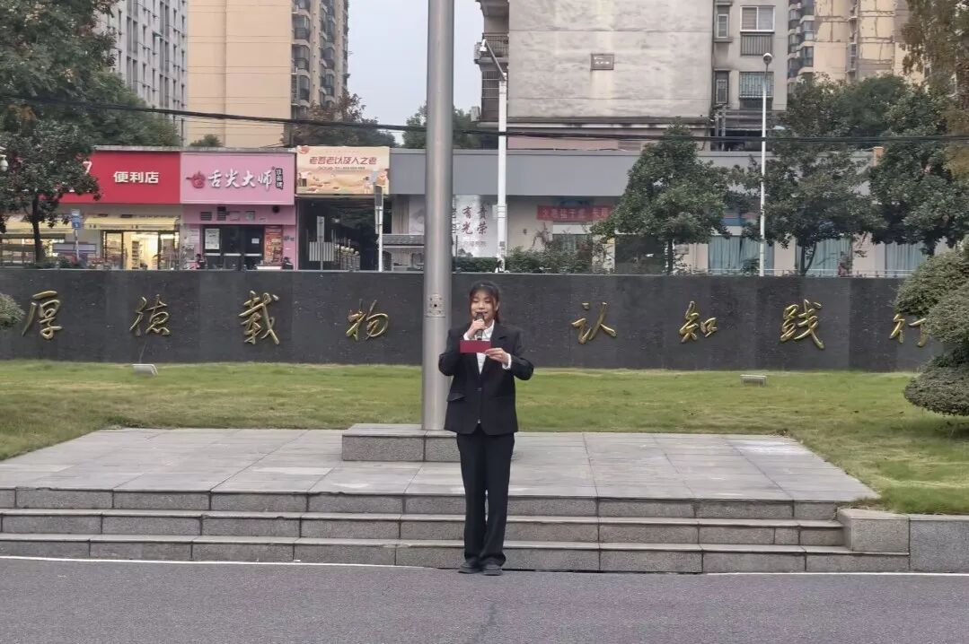 会计学院肖玲老师以 “以青春护国旗,以初心敬先烈”为主题开展演讲,提到在校园升国旗的庄严时刻,人们总会想起李大钊、杨靖宇、邓稼先等先烈,他们用生命守护山河、铸就信仰。当下,大一的新同学以行动续写青年与祖国的联结,军训中为集体荣誉拼尽全力,生活里主动关怀同学、参与志愿服务,自发补位、组建小组备战运动会,这些日常点滴蕴含着与先烈一脉相承的集体意识与担当。她还寄语:时代浪潮奔涌,当代青年的青春与祖国命运同频,成长需紧跟时代步伐,担当更要落到“敢想敢为、善作善成”的实干中,愿当代青年都能以专业为基、以行动为笔,让青春在民族复兴征程中,与祖国同频、与时代共振。