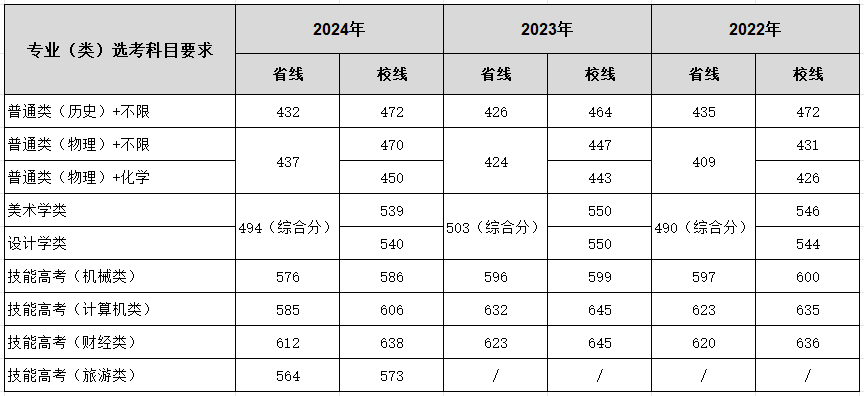 2024年-2022年学校湖北省录取分数线