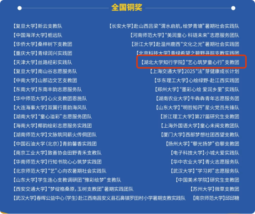 荣耀时刻!我校艺术与设计学院支教团荣获全国大学生农村支教奖全国铜奖!