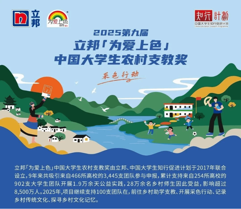 自2025年第九届立邦“为爱上色”大学生农村支教奖启动以来,全国各大高校积极响应。经过组委会严格评审,我校艺术与设计学院“艺心筑梦童心行”支教团队凭借其出色的项目策划、扎实的支教服务和富有创意的美育成果,从众多参赛队伍中脱颖而出,荣获全国铜奖!