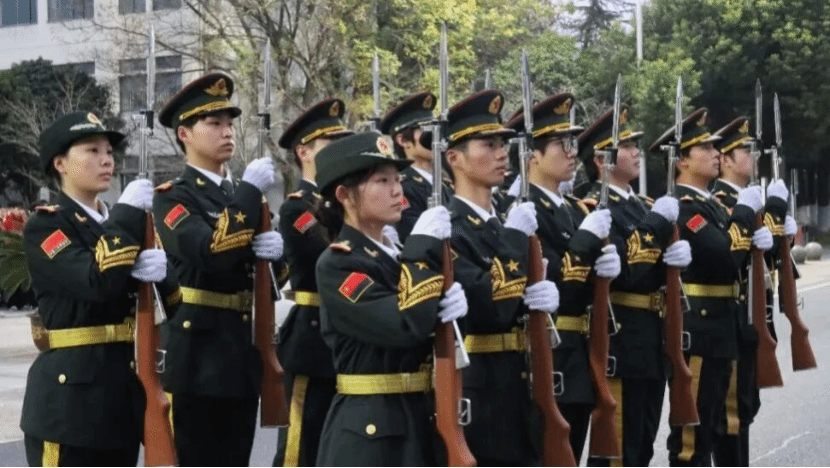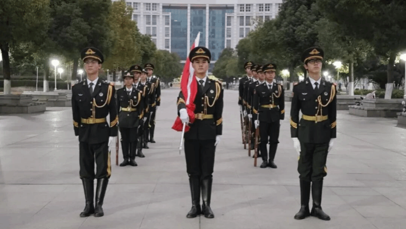 护卫着五星红旗走向升旗台