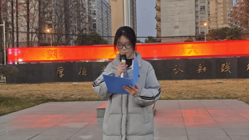 英语2405班陈诗佳同学在国旗下发言,回顾了从近代抗争到艰苦奋斗的历程,分享了前辈们以信念照亮征途的故事。结合自身专业,向同学们发出倡议:扎实学好语言知识,锤炼表达能力,未来在每一次翻译与沟通中准确传递声音,在日常的学习与实践中,让青春因讲述身边的中国故事而闪亮。
